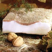 Not really a make-at-home item, this traditional creation from Tuscany captures the care in processing  that makes Italian food famous.  The original curing method supposedly goes back to the year 1000, and has been handed down from generation to generation.  The lard, of course, comes from pigs that have not undergone the genetic transformation that American pigs have.  In any case, you will need marble tubs which you should keep in the basement assuming that there are no caves in your neighborhood.  You rub the tubs with garlic and then layer the pork lard and cover with brine, add sea salt and spices and herbs. You continue with additional layers until the tub is full and then cover with a wooden lid. Curing time is about 6 to 10 months.